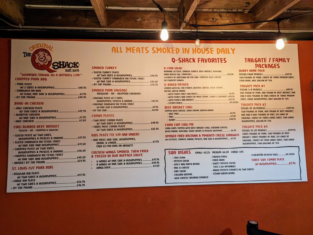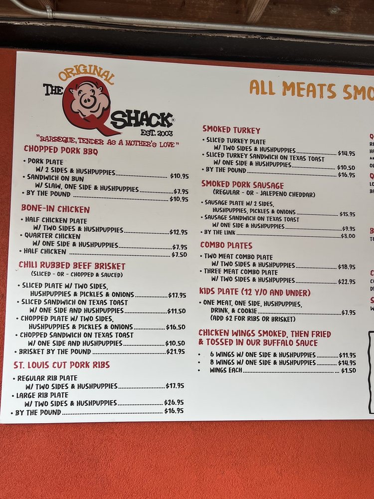 Introducing The Original Q Shack, a casual and classy BBQ joint in Durham, NC. Offering a variety of options from smoked pulled chicken by the pound to build-your-own Q-burgers, this place has something for everyone. Customers rave about the tender and tasty ribs, heavenly brisket, and generous portions of sides. The friendly staff and picnic-style ambiance make for a pleasant dining experience. Whether you're a meat lover or a vegetarian, there are many options to choose from. The laid-back atmosphere, clean surroundings, and quick service have left customers coming back for more. With options for delivery, takeout, and catering, The Original Q Shack is a go-to spot for lunch or dinner. Don't miss out on trying their famous beef brisket chili or corn chip chili pie. Visit The Original Q Shack for a mouth-watering BBQ experience!